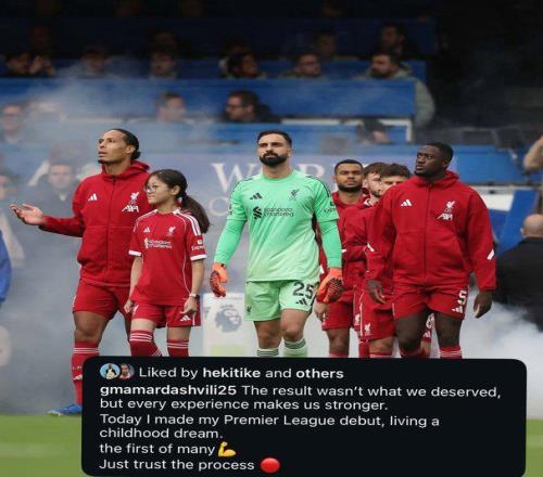 雷速体育10月5日报道宣称 英超联赛第7轮的焦点战,利物浦在补时阶段遭到绝杀,最终1-2不敌切尔西。这是利物浦各项赛事遭遇的三连败。本场比赛首发的利物浦门将马马尔达什维利在赛后发社媒鼓励球队。值得一提的是,本场比赛是马马尔达什维利代表利物浦的英超首秀。