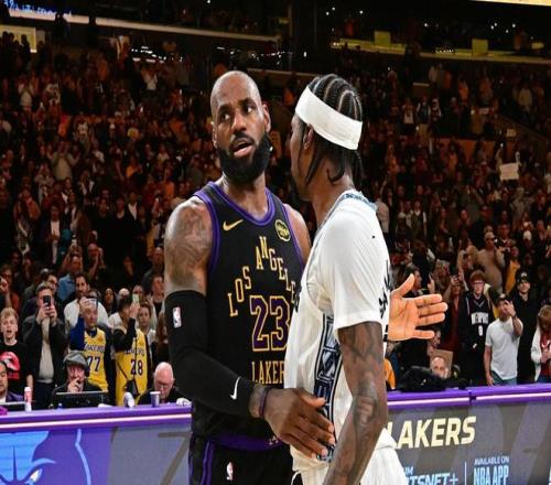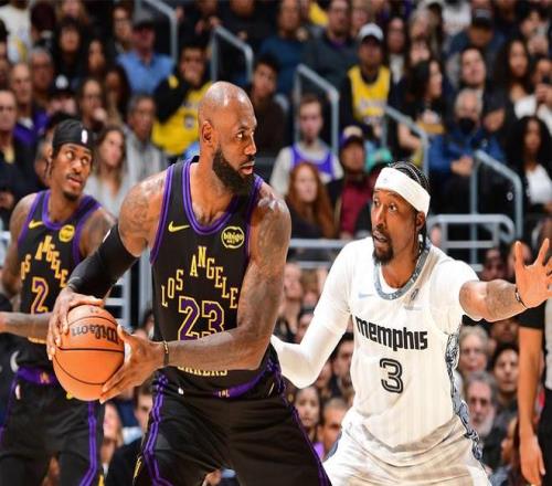 灰熊在第三节结束时将比分追到96平,还在第四节一开始靠莫兰特的上篮反超湖人。詹姆斯这时候站了出来,他制造前队友波普犯规,两罚全中。末节还剩9分43秒,詹姆斯突破抛投得分,湖人下一次进攻依靠詹姆斯的突破上篮继续得分,随后斯马特投进三分球,湖人105比101领先4分。末节前3分半钟时间,在詹姆斯独自带队下,湖人掌握了主动权。