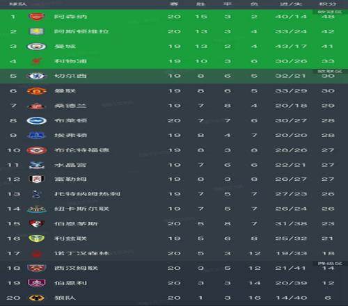 英超第20轮结束了4场比赛,最新积分榜如下!