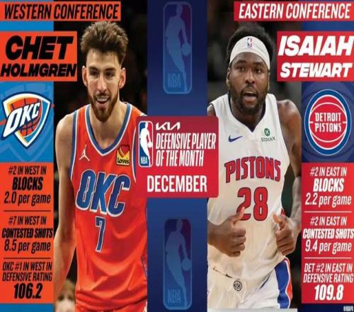 切特还拿到了月最佳防守球员!