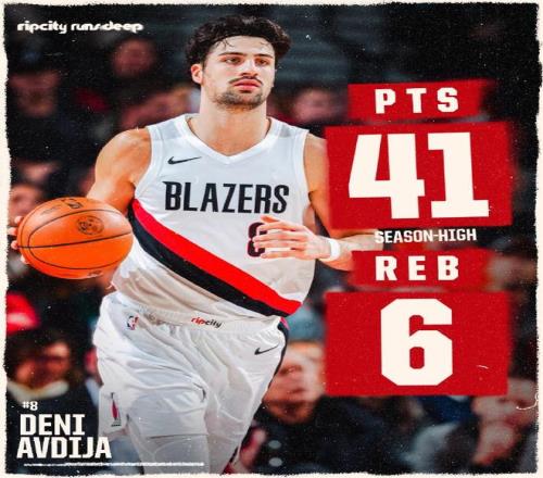 据统计,这是阿夫迪亚自加盟开拓者以来的单场最高得分和本赛季的得分新高,同时也是他开拓者生涯的首场40+得分比赛。